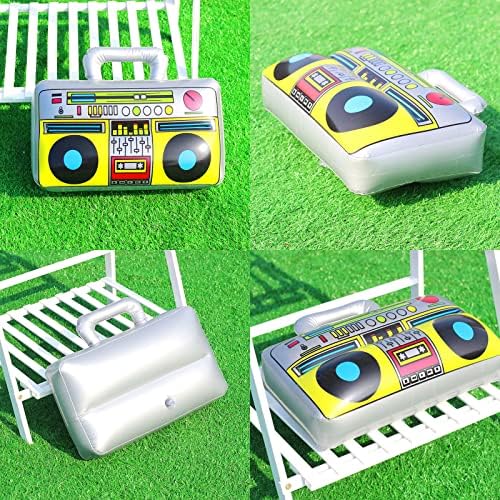 Material: This set of inflatable props is made of PVC material, printed with classic element which makes the radio boom box and phone look more realistic, you can carry to your friends’ parties.