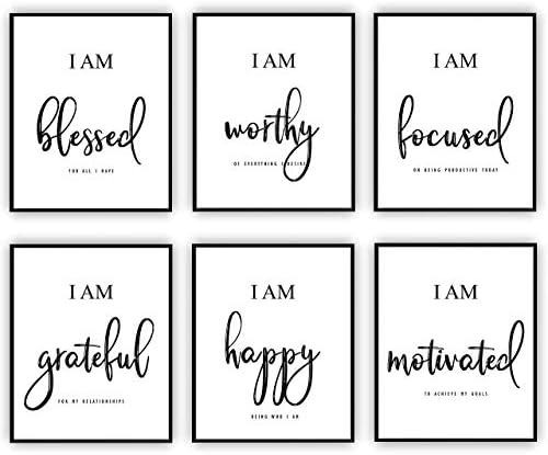 Inspirational Wall Art – Motivational Wall Art – Office & Bedroom Wall Decor – Positive Quotes & Sayings – Daily Affirmations for Men, Women & Kids – Black & White Poster Prints (8X10, Set of 6, No Frame)