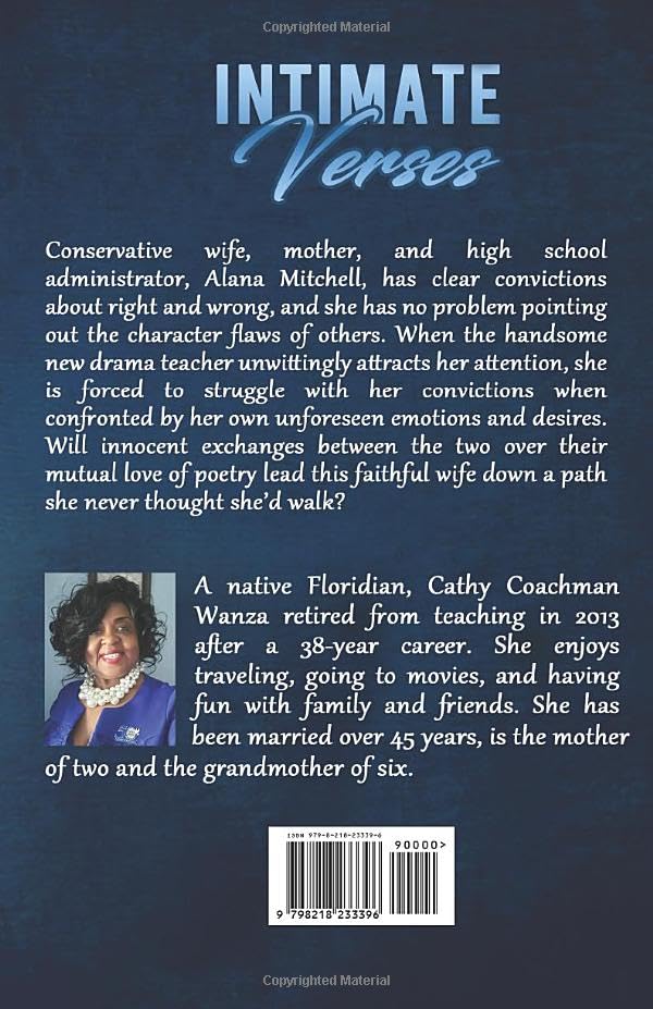 Conservative wife, mother, and high school administrator Alana Mitchell has clear convictions about right and wrong, and she has no problem pointing out the character flaws of others. When the handsome new drama teacher unwittingly attracts her attention, she is forced to struggle with her convictions when confronted by her own unforeseen emotions and desires. Will innocent exchanges between the two over their mutual love of poetry lead this faithful wife down a path she never thought she’d walk?