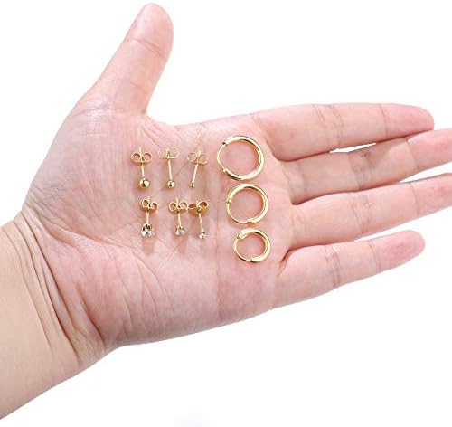 [ONE-FIT-ALL JEWELRY]–Our earrings not only have good quality and affordable quantities,but also have a good match.2mm/3mm/4mm stud earrings and 8mm/10mm/12mm hoop earrings sold together,you can wear simple one pair only,or multiple pairs.These can be used for cartilage piercing,ears piercing,nose piercing,lips piercing or other body piercings for numerous holes.