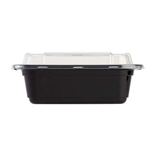 Karat IM-FC1012B 12 oz. PP Injection Molding Microwaveable Food Containers with Clear Lids, Rectangular – Black (Case of 150)