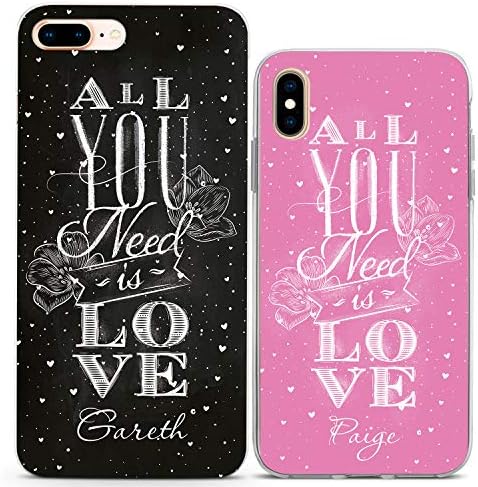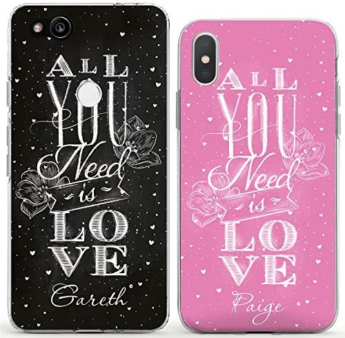 Lex Altern Couple Cases Compatible with iPhone 12 Pro Max 11 Mini SE Xr Xs 8 Plus 7 6 TPU Matching Custom All You Need is Love Quote Cute Pink Black Boyfriend Girlfriend Protective Cover Anniversary