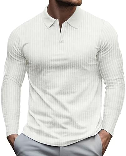 Men’s Muscle V Neck Polo Shirts Slim Workout T Shirts Casual Golf Shirts Knit Soft Tees