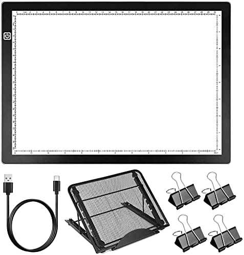 The package contains a A4 LED light board, 4 equipped clips and an adjustable stand. LED light box is very suitable for 5D diamond painting, vinyl sheet cutting, Cricut vinyl, scrapbooking.