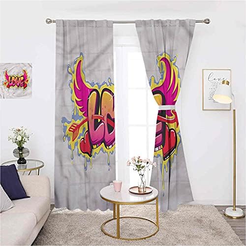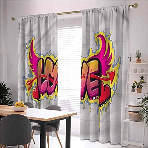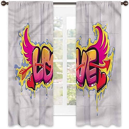 Love Bedroom Rod Pocket Blackout Curtains, Love Quote on Brick, Set of Two Panels for Curtains W52 x L72 Inch