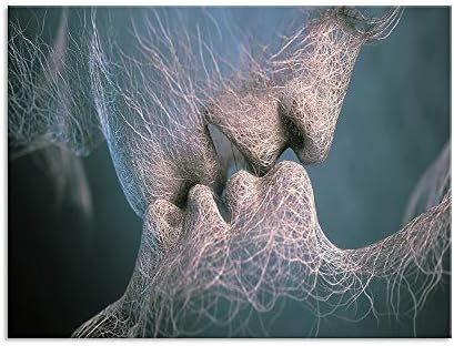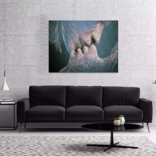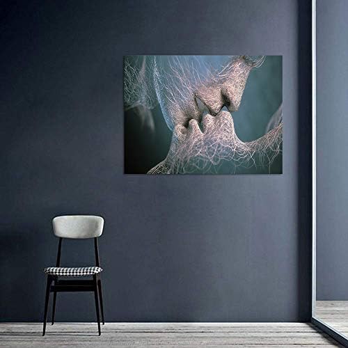 ➤【About the product】: set of 1pcs canvas art ,frame contain in this product, size of 24x36inches. The artistic line face kissing design wall art represents the vitality of youth and also represents Represents Blessing, Love and Promise.