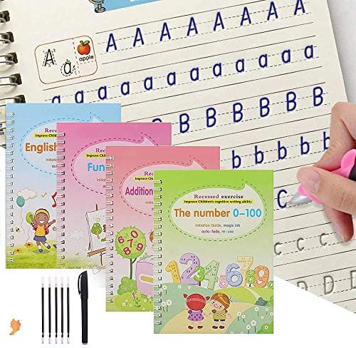 4Pcs Magic Practice Copybook for Kids – If you want your children to learn calligraphy, Writing, painting, mathematics, English. A reusable magic copybook set is a must-have. This is a great gift for kids. (Notes: Our magic copybook is different from other Chinese versions on the market, we are all in English.