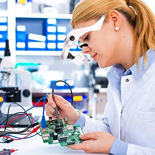 ✔ DUAL HEADBAND WEARING MODES & ADJUSTABLE LED LIGHTS: Alternate between wearing it as glasses or headband. The included head strap can be attached with ease to ensure a more secure fit. The movable head magnifier lens slot can adjust the distance between your eyes and lens for different needs to ensure accurate irradiation of light source on the surface of viewed object ,making it more convenient in use. This magnifying glass lamp can be used as a headlamp at night.