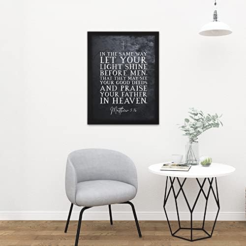 Matthew 5:16 Let Your Light Shine Good Deeds Praise Father in Heaven Christian Bible Verse Quote Scripture Typography Artwork Framed Wall Art Print 18X24 Inch