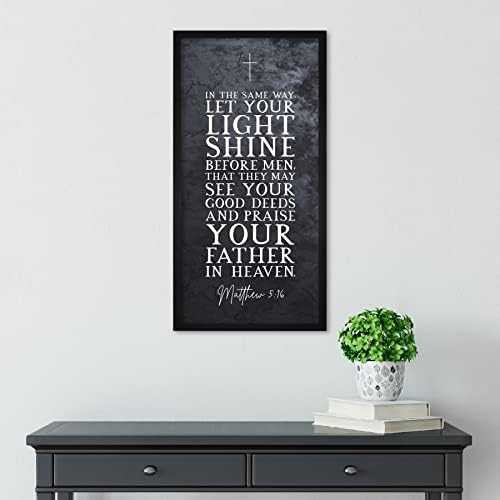 Matthew 5:16 Let Your Light Shine Good Deeds Praise Father in Heaven Christian Bible Verse Quote Scripture Typography Framed Wall Art Print Long 25X12 Inch