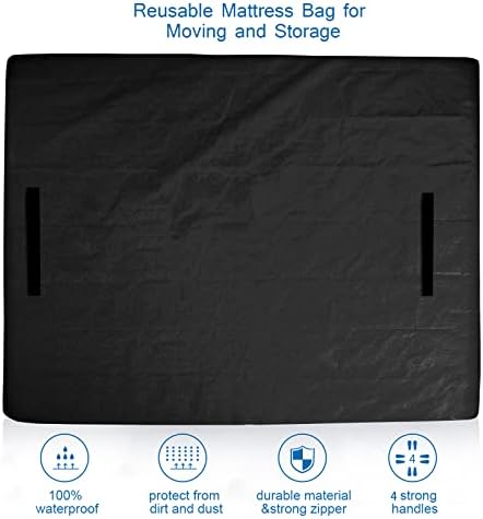 Mattress Bags for Moving and Storage Twin Size, Waterproof Mattress Cover for Moving with Heavy Duty Handles, Strong Zipper, Reusable Mattress Storage Bag, Moving Supplies & Moving Bags,Black