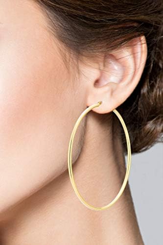 Miabella 18K Gold Over Sterling Silver 2mm High Polished Round Tube Hoop Earrings for Women Men Girls 15mm, 20mm, 30mm, 40mm, 50mm, 60mm Lightweight Earrings Made in Italy