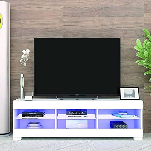 Two Styles: Simple TV cabinet with LED lights off is suitable for any room with decoration style. When you turn on the LED lights, there is a dazzling lighting environment, creating a lively atmosphere