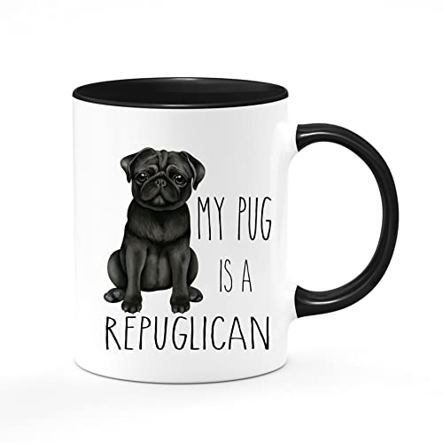 My Pug Is A Repuglican Funny Cute Adorable Republican Politics Black and White Dog Coffee Tea Hot Chocolate, 11 Ounce Ceramic Mug