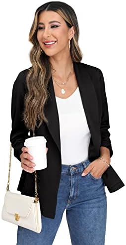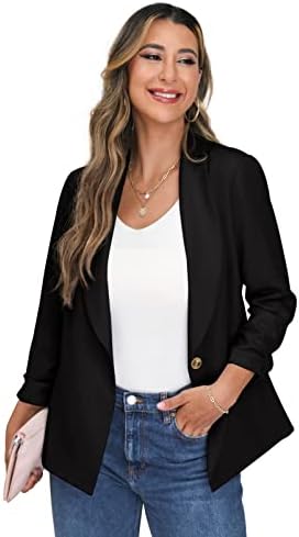 ONLYSTORY Womens Blazer Jackets for Women 3/4 Ruched Sleeve Work Casual Blazer with Pockets