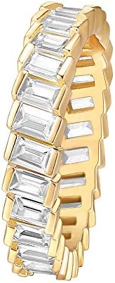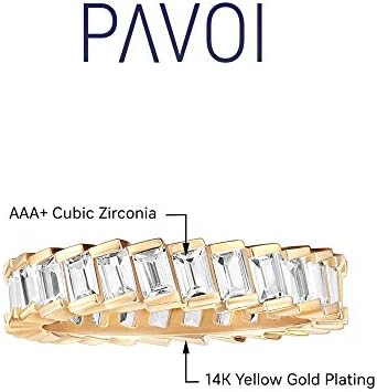 PAVOI 14K Gold Plated Cubic Zirconia Baguette Cut Eternity Bands for Women