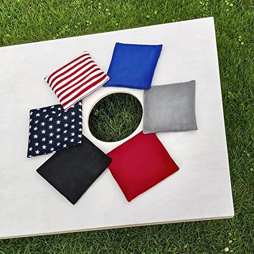 REGULATION SIZE and WEIGHT: Professional cornhole bags set of 8, each measures 6″x6″ and weight 14-16 ounces, which is in traditional size and weight, offering you a comfortable touch and tight grip. These come within a FREE bag for easy storage and transport.