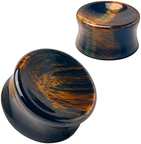 Pierced Owl – Natural Concave Dark Tiger Eye Stone Double Flared Saddle Fit Plugs, Sold as a Pair