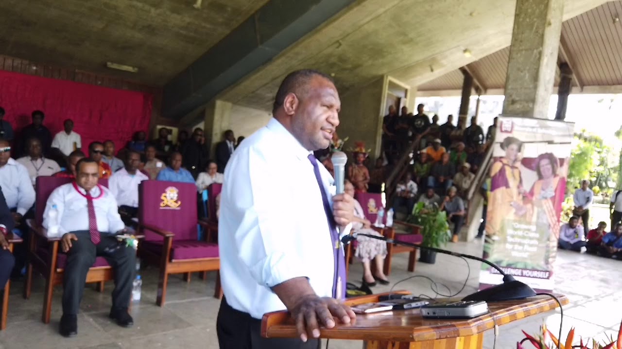 Prime Minister James Marape explains to University of Technology students his vision of PNG becoming the “richest black Christian country” on Thursday, Oct 3, 2019