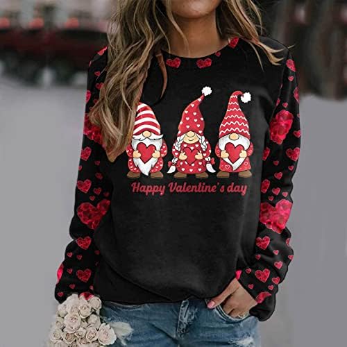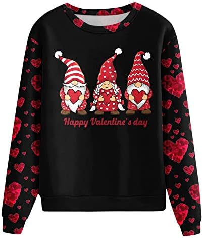 POTTON Casual Valentines Day Womens Sweatshirts No Hood Crewneck Athletic Couple Red Heart Sweaters Long Sleeve Cartoon Love
