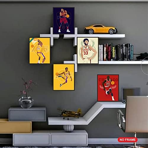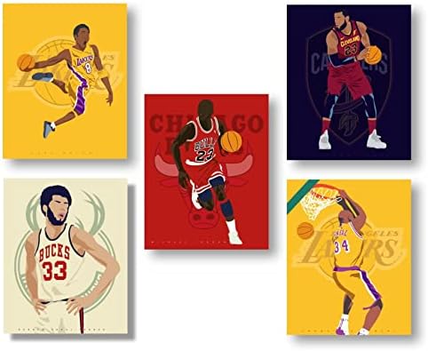 PoyBux Design – NBA Poster, NBA legend Players Wall Art Poster Prints, Set of 5 (8”x10”) UNFRAMED, Basketball Room Decor Micheal Jordan Poster, Kobe Braynt Poster, Shaquille O’Neal Poster, Lebron James Poster, Kareem Abdul-Jabbar Poster, NBA Wall Art