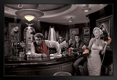 Java Dreams with James Dean Marilyn Monroe Elvis Presley and Humphrey Bogart by Chris Consani Bar Pictures Hollywood Wall Art Print Poster Standing Frame in Black Wood 20×14