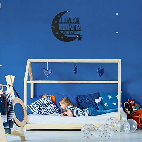Decorative moon love quote art: the moon wall sign features with words: I love you to the moon and back, which makes the sign romantic and warm; It is the nice present for your friends, family, or lover, and a nice way to express your love; Simple monogrammed gift but with full meaning; It also can be applied as room decors, helping you to create sweet loving atmosphere at your home and add more charm of your bedroom