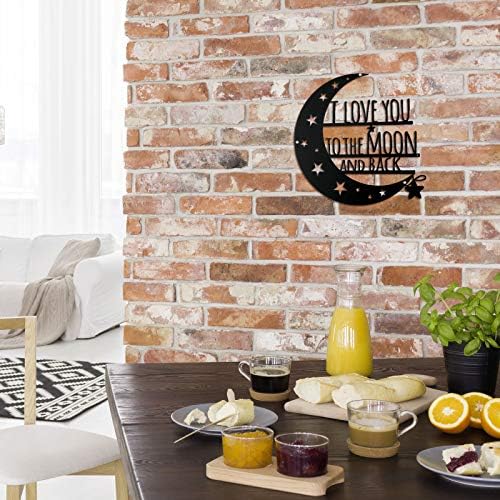 Ripeng I Love You to The Moon and Back Wall Art Moon Metal Wall Decorations Hanging Wall Plaque Sign with Love Quote Monogrammed Home Decor for Anniversary Valentine’s Day (Black,7.2 Inch)