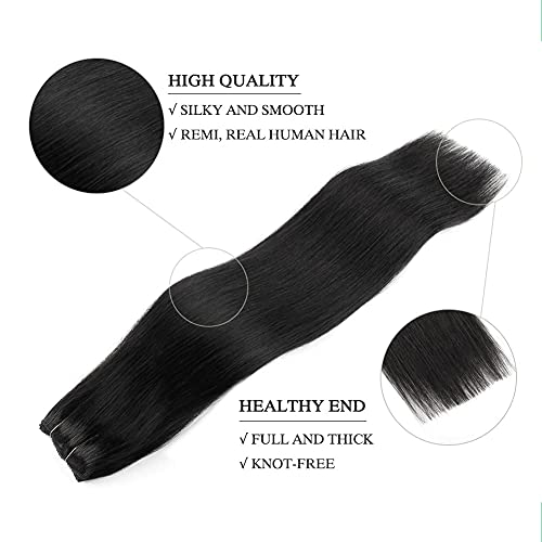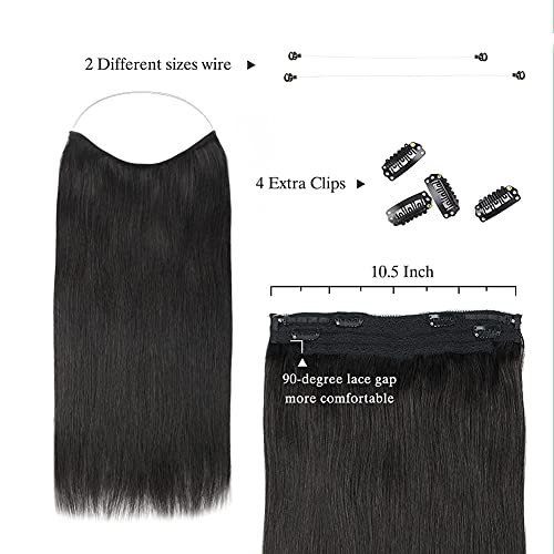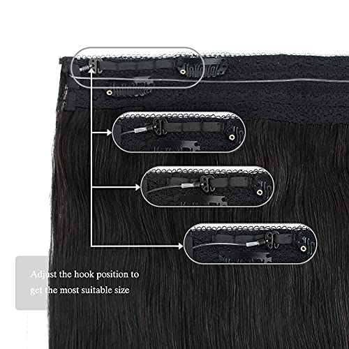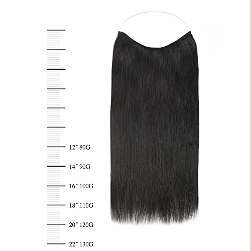 SASSINA Real Human Hair Extensions Halo Hair, 18 Inch 110g Jet Black Halo Hair Extensions Straight Style with Transparent Fish Line #1