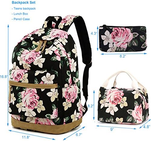 ★ School backpack matching 3 pieces: Girls backpack: 11″*5.9″*16.7″(28cm*15cm*42.5cm); Lunch box bag: 8.7″*6.3″*7.5″ (22cm* 16cm*19cm); Purse: 8.3″*4.1″ (21cm* 10.5cm), a very good combination for teenage to school or for family have picnic, hiking, traveling or outdoor activities