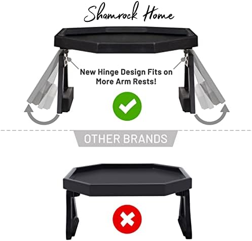 Shamrock Home Bambo Couch Arm Table, Clip On Tray Sofa Table for Couches. Sofa Arm Tray, Armchair Table for TV Dinners, Remotes, Drinks and Snacks and Small Spaces – 13×10.8in, Black