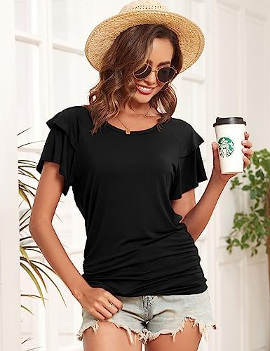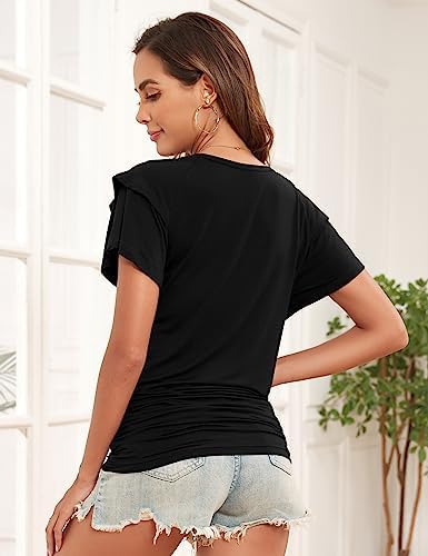 Side Seam Ruched Double Layer Short Sleeve Tops Summer Crewneck Tshirts for Women 2023 Trendy