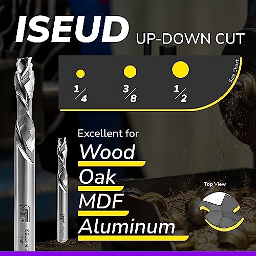 SPEED TIGER Carbide Spiral Router Bits – Up Down Compression Bit, ISEUD1/2” Diameter, 1-1/2” Cutting Length, 4″OVL (1 Piece, 1/2″) – for Wood, Plywood, MDF, Oak, Aluminum – Mill Bits Sets