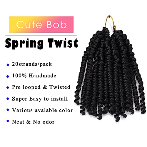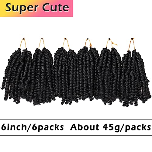 Spring Twist Hair 6 Packs Bob Spring Twist 6 Inch Versatile Short Pre Twisted Passion Twist Crochet Hair Cute Synthetic Braiding Hair Crochet Braids Curly Hair Extensions for Black Women(1b)