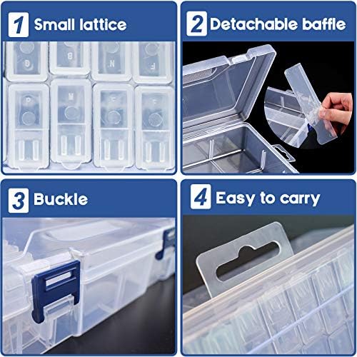 【44 Independent Grids】- Large plastic container contains 44 independent grids. Each mini grid can be take out individually and designed with button, protect the drills from spilling when moving, 44 grids provide enough storage space for painting diamonds.