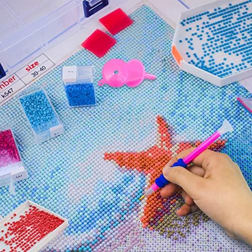 【Rich Accessories】- 44 Small container,3 label sticker,1 correction board, 6 diamond painting pen,1 diamond adjust pen ,2 canvas clips, 3 diamond tray, 30 OPP storage bag, 2 pink funnel, 6 pen grip,1 tweezer,10 glue, 1 instruction,total 110pcs。 Note: Diamond not included.