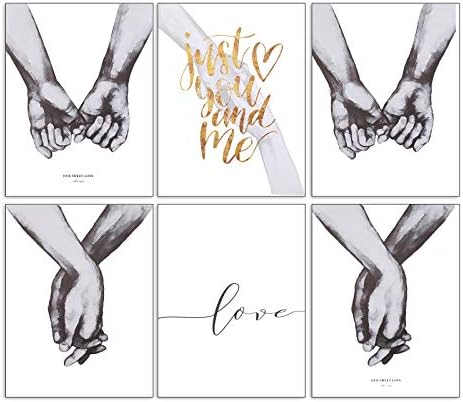 WALL ART PRINT POSTER: Package includes 6 pieces Canvas unframed Love word and couple holding hands wall decor art print poster, each size 12 x 16 inches. The black and white sketch art line drawing makes the space more harmonious.