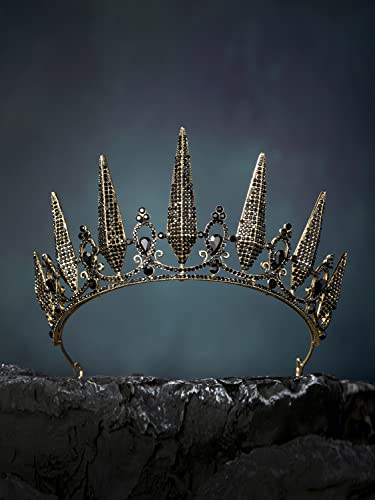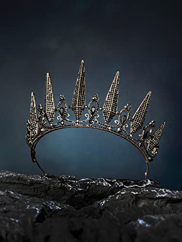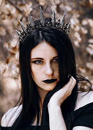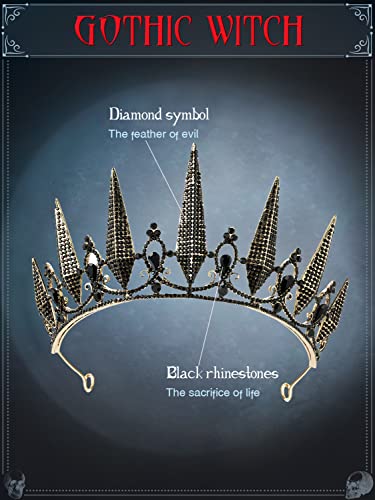 SWEETV Gothic Crown Pageant Tiara for Women, Black Queen Tiaras and Crowns, Witch Costume Party Accessories for Wedding Halloween Prom