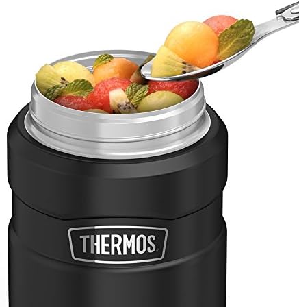 The Thermos brand is well known as the quality and performance leader in insulated food and beverage products. The Stainless King series creates a new chapter in Thermos’ storied history with a modern line that blends out newest technology with a dash of the past. An ideal choice for people on the go, the Stainless King Vacuum Insulated Food Jar is built to last and loaded with features to make for a more enjoyable eating experience. Thermos vacuum insulation technology virtually eliminates temperature change within the food container by creating an airless space between two stainless steel walls. The result is an insulation layer that performs better than any other. A superior insulated container you can depend on to keep your food hotter, colder, fresher, longer. This food jar keeps items hot for 7 hours or cold for 9, making it a great choice for long days where mealtimes might be a little irregular. Constructed with double wall stainless steel, this 16 ounce food jar is virtually durable, yet its sleek design is both eye-catching and functional. The contoured body shape is easy to grip and the wide mouth opening is easy to fill, eat from and clean. The lid serves a dual purpose by also functioning as a serving bowl. The Stainless King Food Jar features premium, double wall vacuum insulation so the stainless steel body stays cool to the touch with hot items and condensation-free with cold items. Only the best materials are used to construct this food jar and are 100% BPA free. In order to maximize the incredible insulation technology, it is recommended to either pre-chill or pre-heat the food jar just prior to use. This can be accomplished by filling the food jar with cold or hot tap water, attaching the lid and letting it rest for a few minutes. Before you are ready to use, simply empty the water and fill with your favorite food item. Attaching the lid will further increase the thermal efficiency.