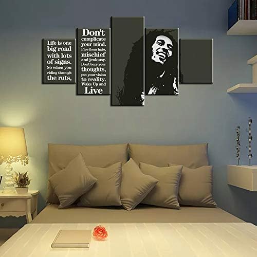 Tucocoo Black and White Wall Art Pictures Musician Paintings Jamaican Culture Art 5 Panel Canvas Inspirational Quotes Artwork Home Decor for Living Room Giclee Framed Ready to Hang(60”Wx32”H)