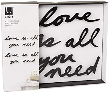 Umbra Mantra Wall Décor Phrase – Love Is All You Need – Set of 10 Stamped Metal Words – Inspirational Wall Quote Black Sticker – Mounts to Wall With Adhesive Built-in Pins – Adds Inspiration To Rooms