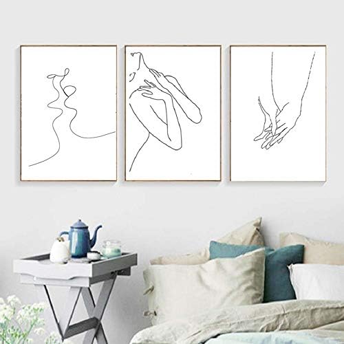 Unframed 3Set Wall Art Minimalist Painting,Lady Holding Hands Hug Embrace Kiss Black and White Canvas Line Art Print Poster, Minimal Wall Art Sketch Art Line Painting for Bedroom (16” x 20”)
