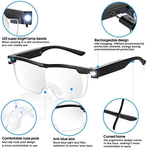 160% Magnifying Lighted Eyeglasses, with rechargeable function!