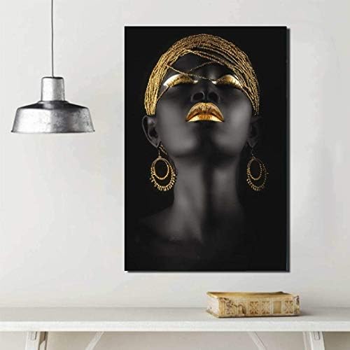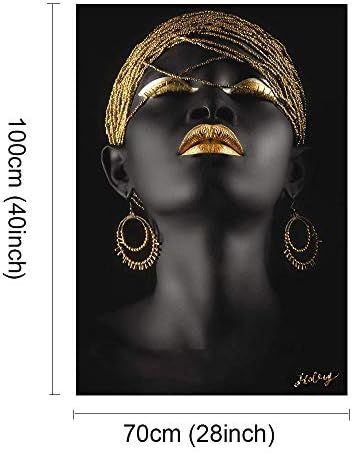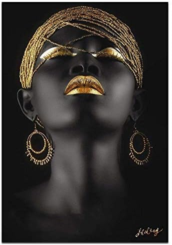 Wall Art African American Art Wall Decor Canvas Wall Art Original Designed Pop Gold earrings necklace Black Pretty girl Style Painting on Canvas Poster Print Without Frame (28×40 inch affiche)