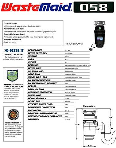 Waste Maid 10-US-WM-058-3B Garbage Disposal, 1/2 HP Economy, Black