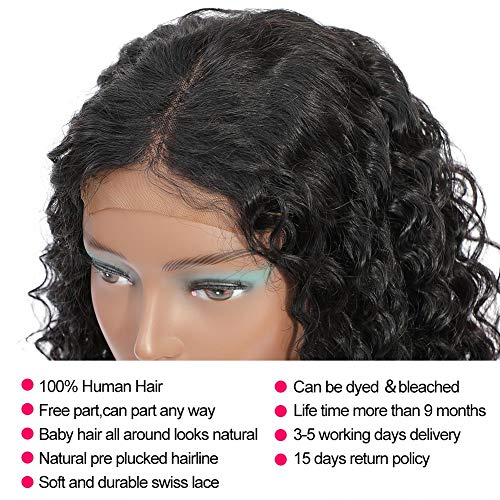 【Wet Wavy Lace Front Wigs Human Hair Quality】:100% Brazilian Human Hair Cut From Young Girl Donors, Soft and Silky, Full and Thick. 4X4 Human Hair Lace Closure Wigs Can Be Dyed, Straightened, Durable, Reusable, No Shedding, No Dry End and Tangle-free