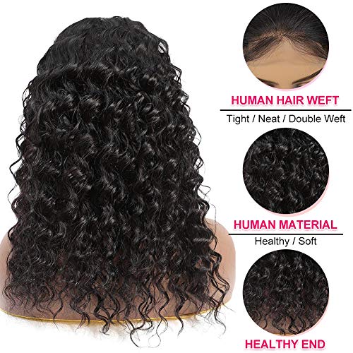 Water Wave Lace Front Wigs Human Hair for Black Women 150% Density Brazilian Wet and Wavy Virgin Human Hair Wigs 4×4 Curly Lace Closure Wig Human Hair Pre Plucked with Baby Hair Natural Black 22inch