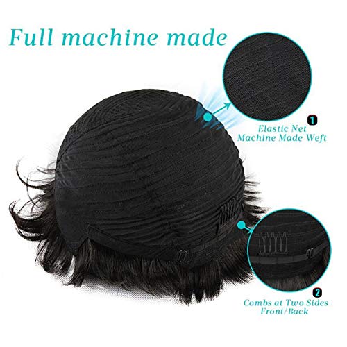 Waveme Short Pixie Human Hair Wigs Straight Brazilian Virgin Hair Boy Cut Wigs for Women Ombre Colors 9001 (Black 1B)