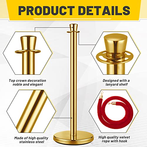 Wesiti Stainless Steel Stanchion Post Queue, 5ft Red Velvet Rope Red Carpet Ropes and Poles Stanchions and Velvet Ropes Gold Stanchions with Red Rope Crowd Control Barriers for Party Supplies (12 Pcs)