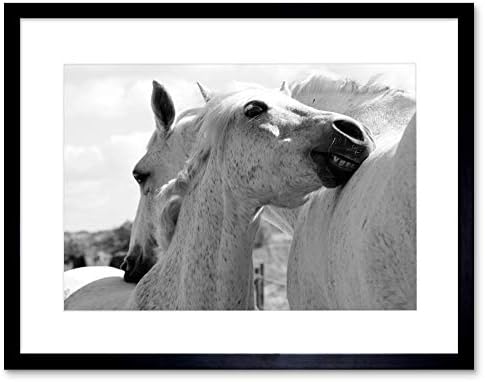 White Horses Black White Hug Love Horse Black Framed Art Print Picture B12X8310
